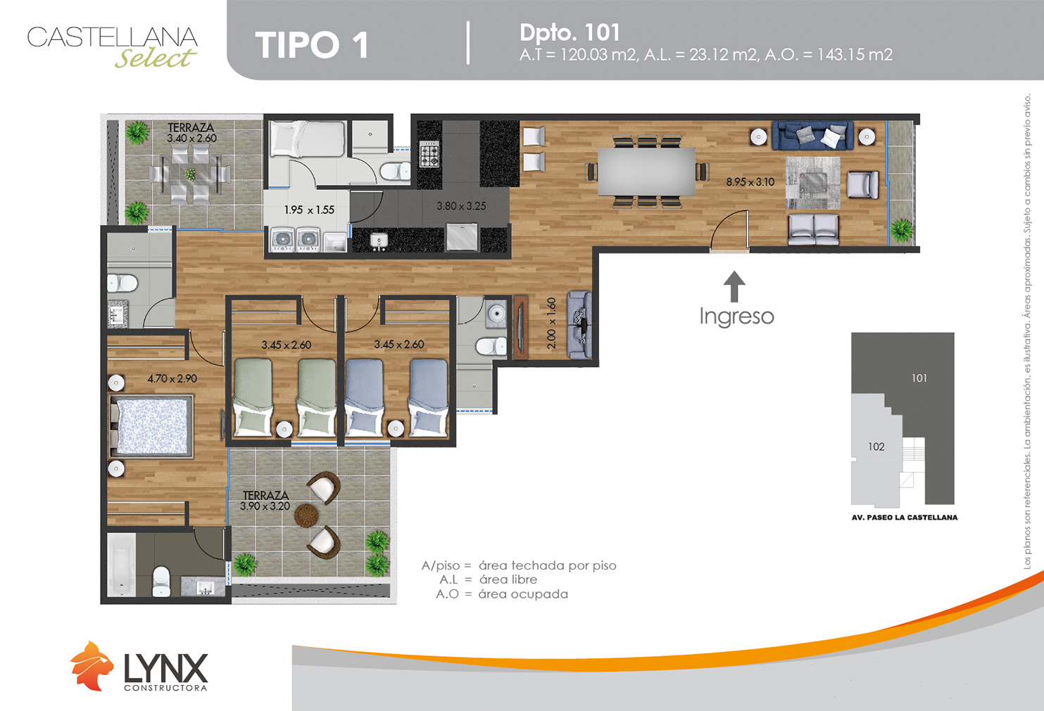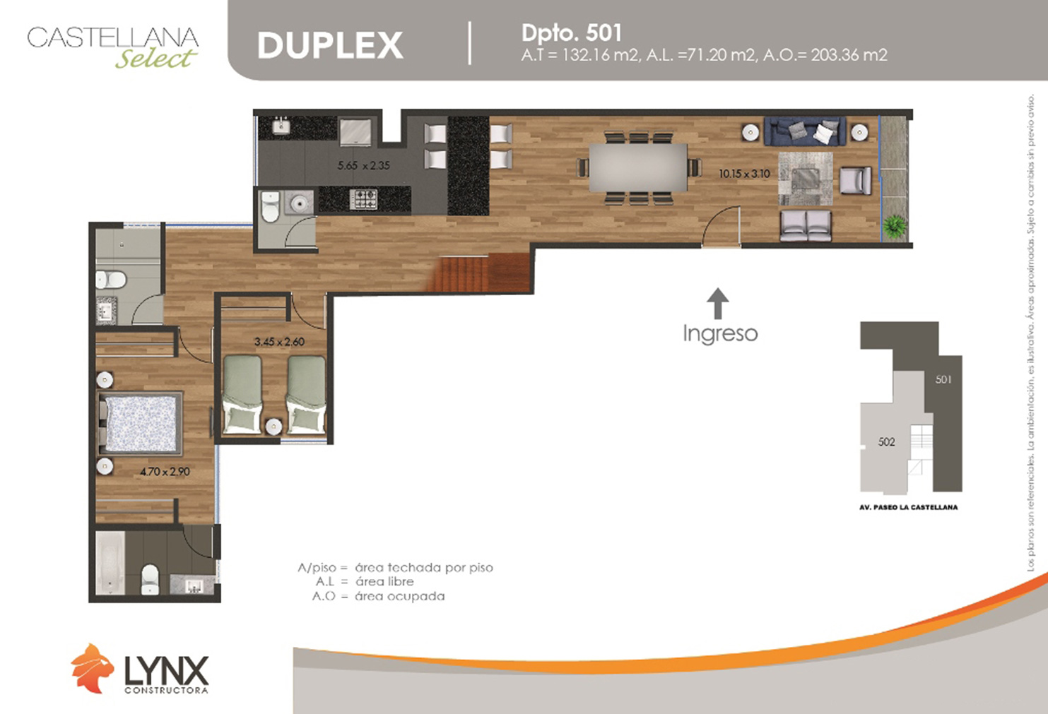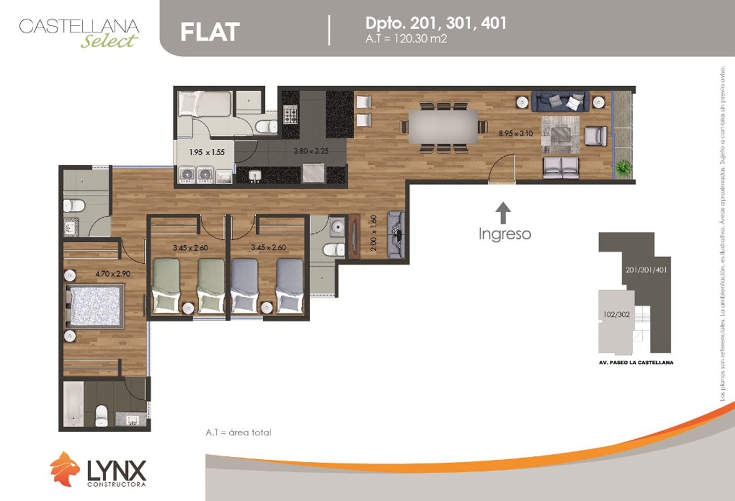 Flats y dúplex desde 120 m2 hasta 203 m2