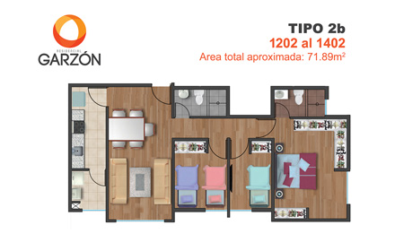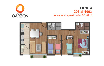 Pisos laminados en sala, comedor y dormitorios
