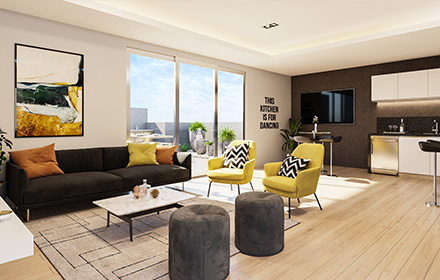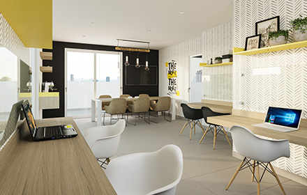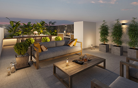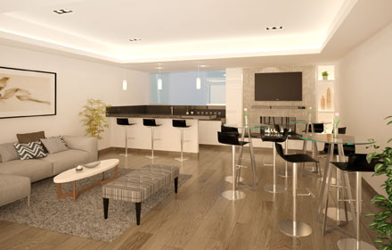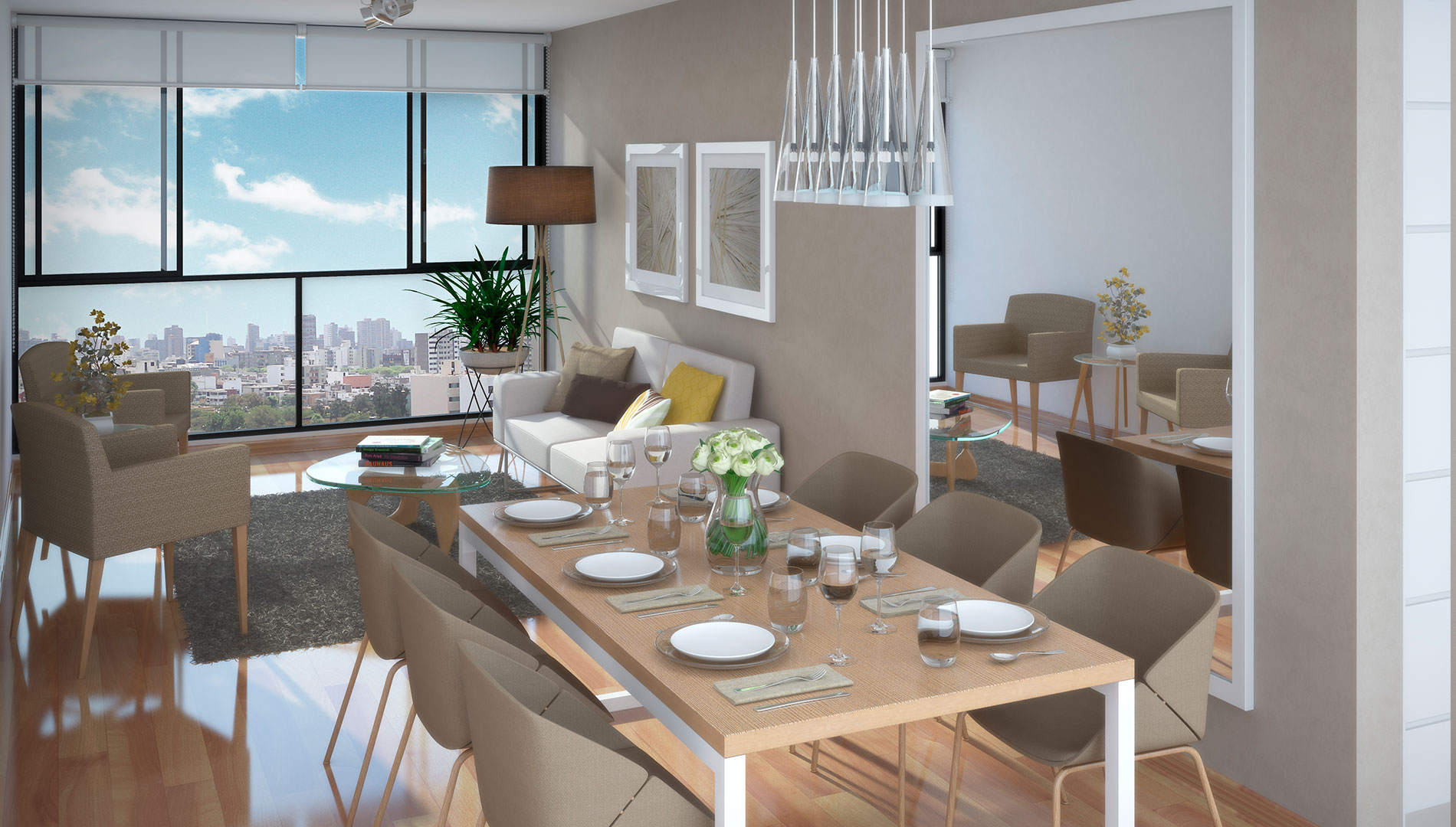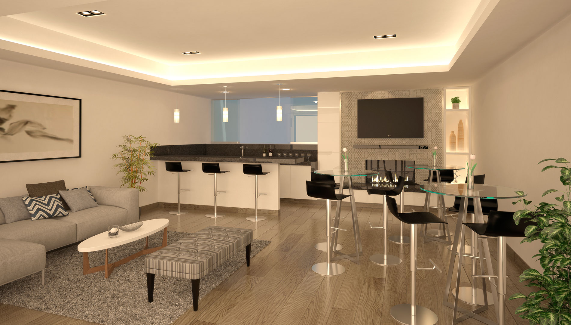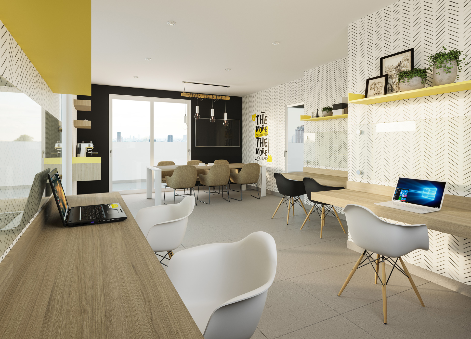Lobby equipado con cámaras de seguridad, sala de usos múltiples para reuniones sociales.