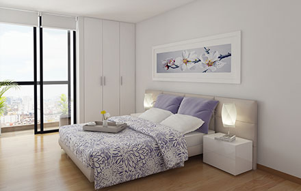 Closets en todas las habitaciones y mamparas de vidrio templado