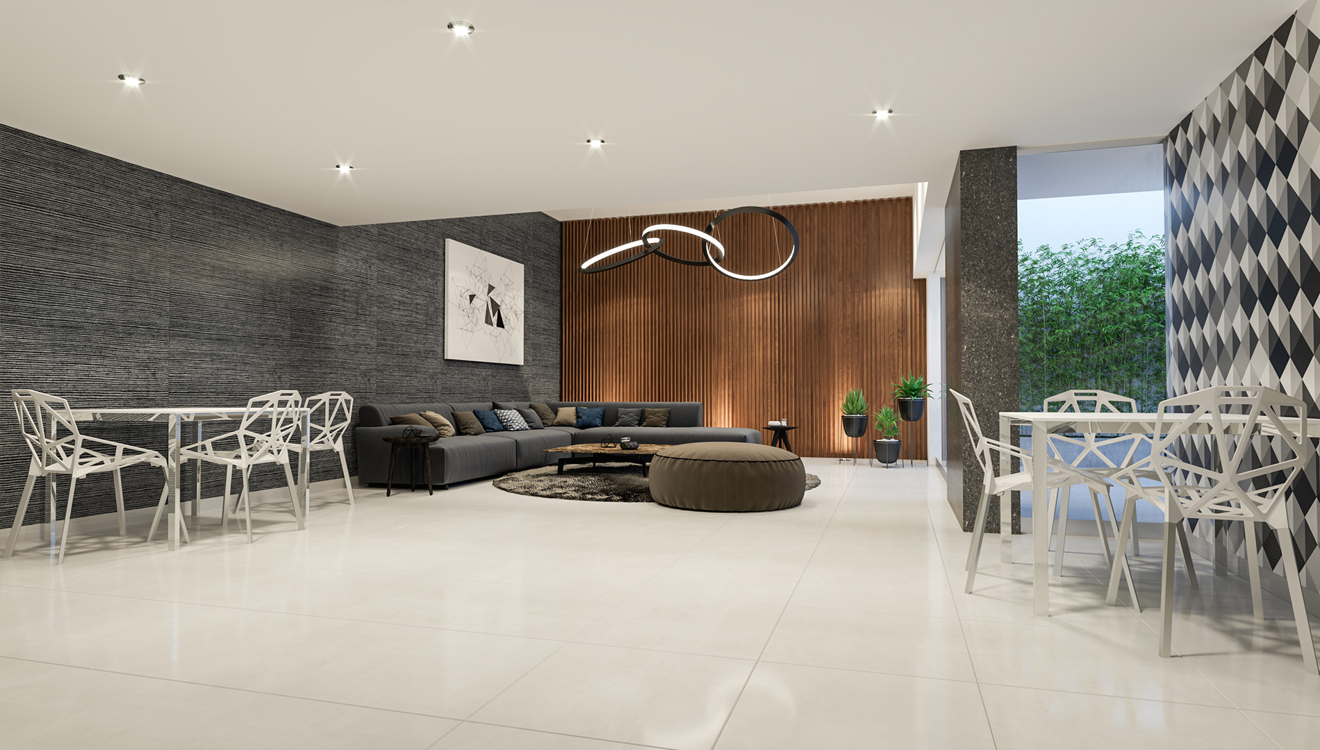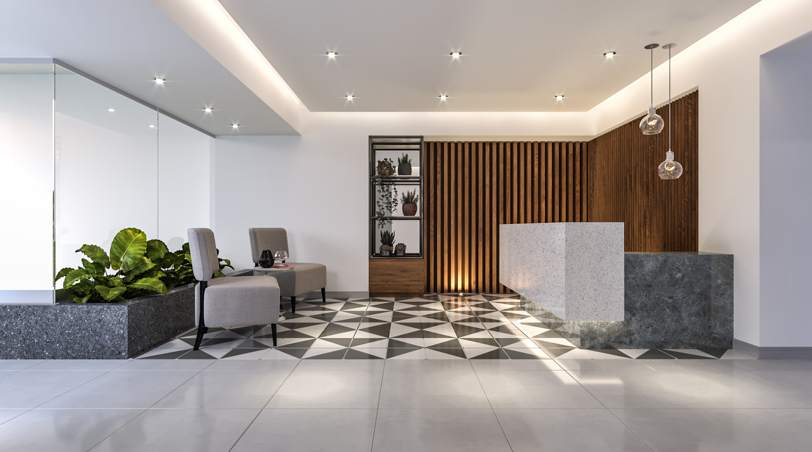 Lobby equipado con cámaras de seguridad.