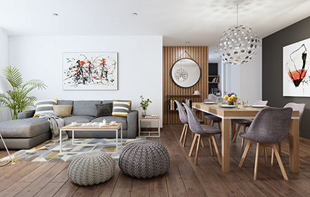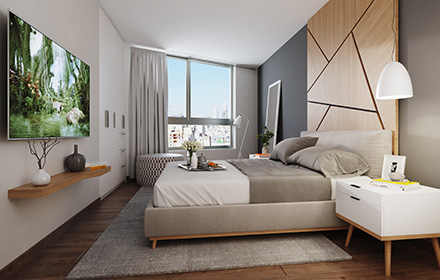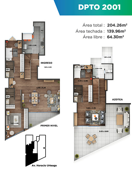 Pisos laminados en sala, comedor y dormitorios